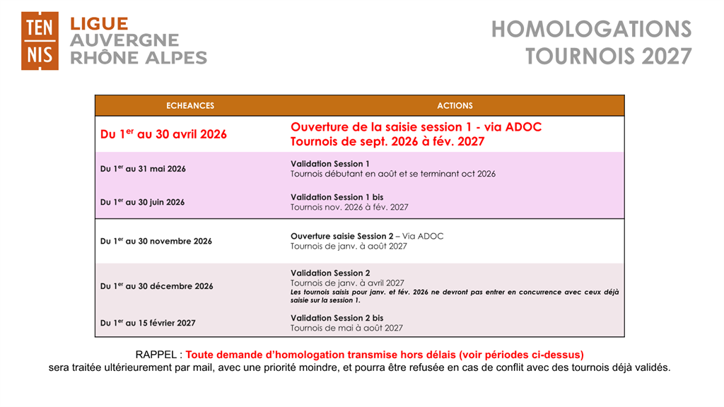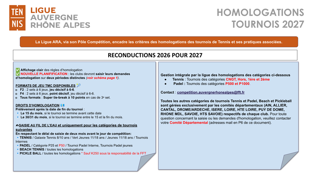 Homologations Tournois
